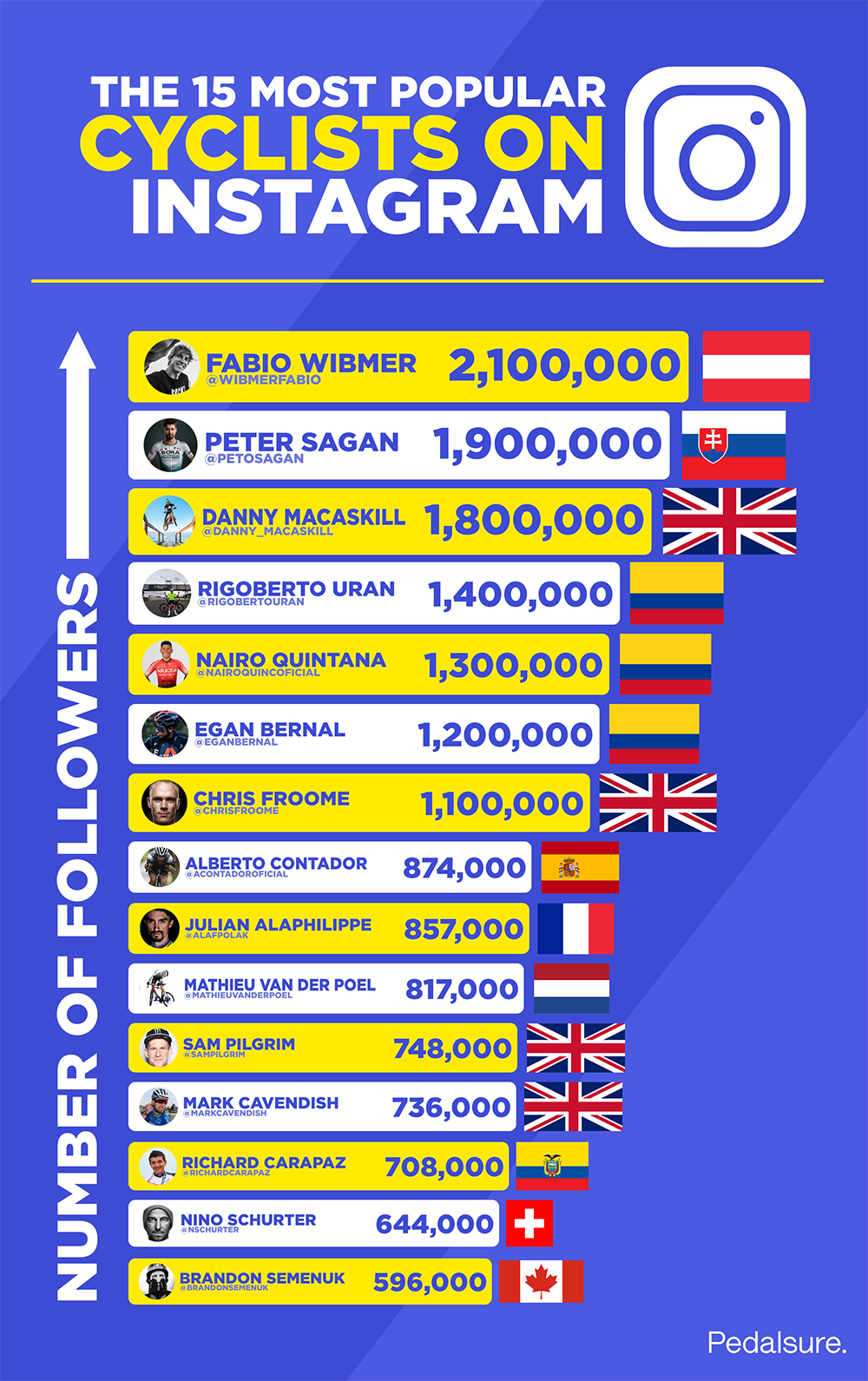 From Hollywood stunt stars to Tour de France winners we've listed the 15 most popular cyclists on Instagram. How many do you follow?